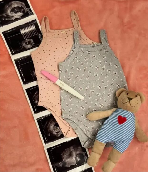 Na svom Instagram profilu je podelila pozitivan test na trudnoću, snimak sa ultrazvuka, plišanog medu i dečiju garderobu.