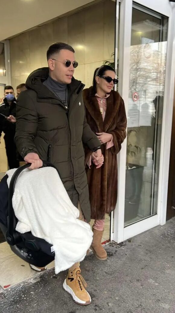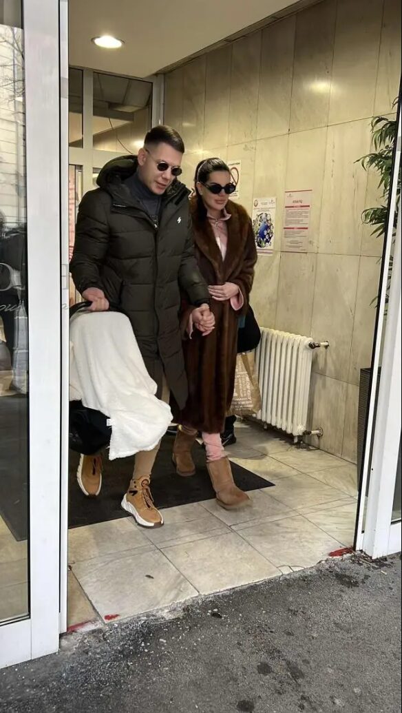 Jovana i Jakov upravo su napustili beogradsko porodilište, ruku pod ruku sa novopečenim tatom. Jovana se krila ispod velikih sunčanih naočara, a ponosni roditelji imali su velike osmehe na licima.