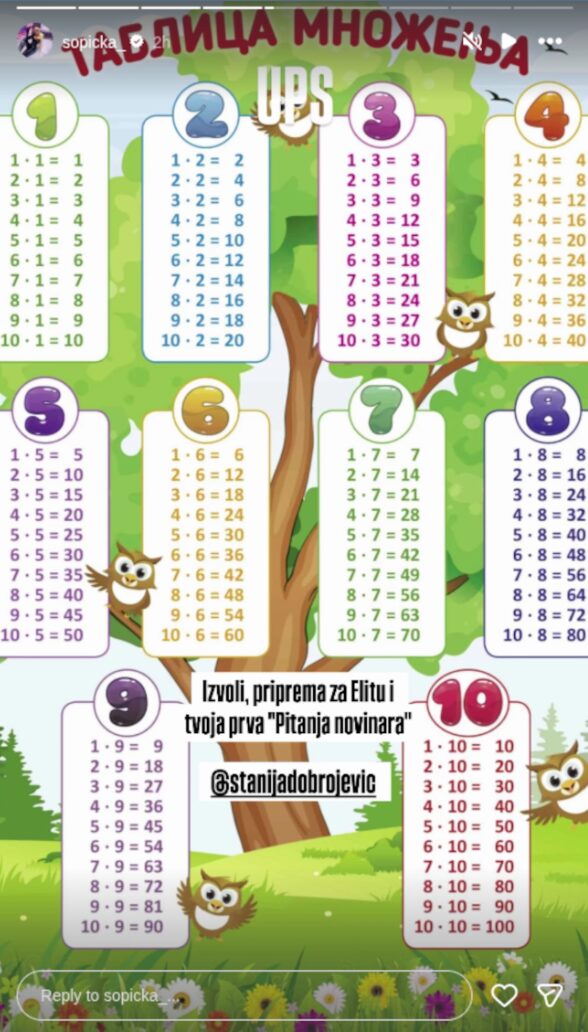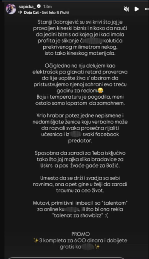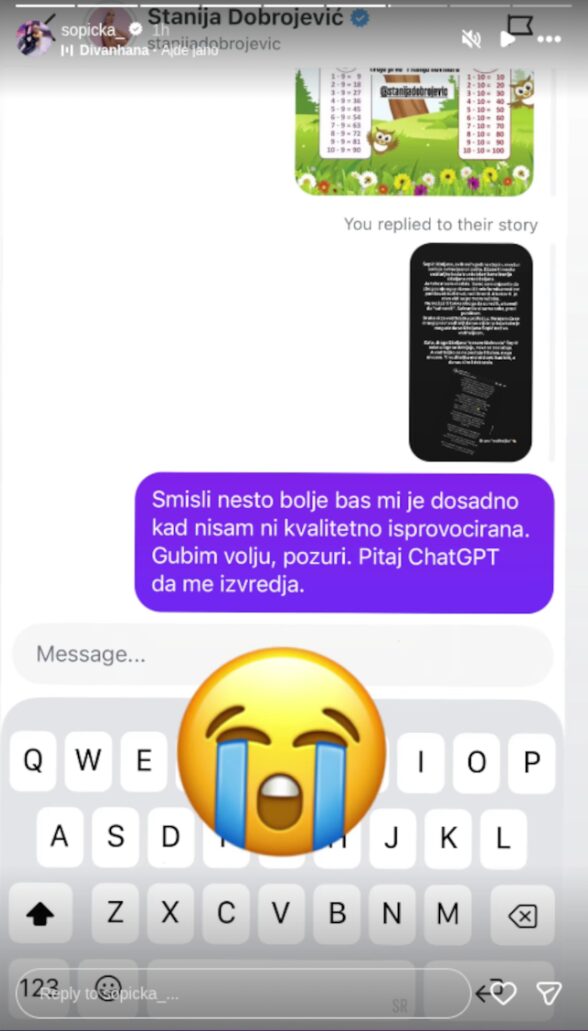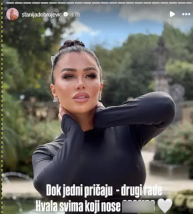 Stanija je zatim u narednoj objavi na Instagramu podelila fotografiju koju je Ivana Šopić postavila na društvene mreže, a na kojoj je Dobrojevićeva navodno prikazana kao model za “Temu”.
