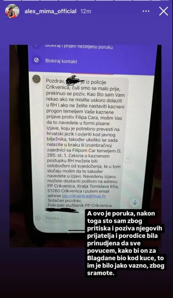 Za kraj, Aleksandra je objavila poruku koja je dobila od policijskog službenika u Crikvenici.