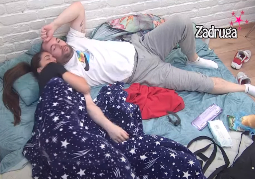 Anđela Đuričić nastavila je razgovor sa Zvezdanom Slavnićem, a kako je on skinuo duks, ona je legla tik pored njegove glave.