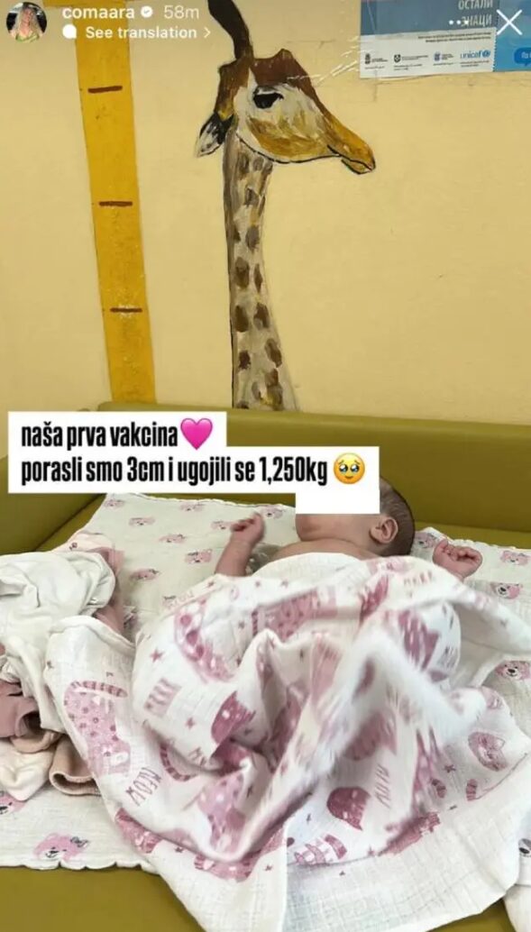 – Naša prva vakcina. Porasli smo 3 cm i ugojili se 1,25 kg – napisala je Veličkovićeva.