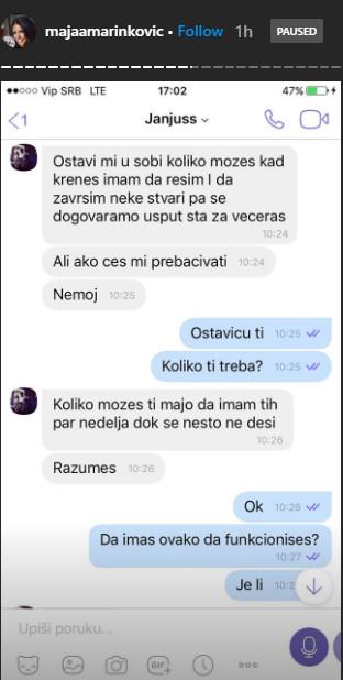 Maja je obelodanila i to da je Janjuševiću pozajmljivala novac, što se jasno vidi iz ovih prepiski.