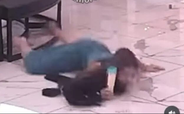 Kamera je zabeležila kako je prvo se nagnula u stranu a onda da pada unapred, a iako je prizor u prvi mah izgledao dramatično, srećom, prošlo je bez ozbiljnijih posledica.