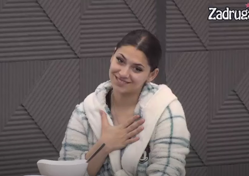 Milica Veselinović i Filip Car peckali su se u dnevnoj sobi, dok je ona večerala za crnim stolom.