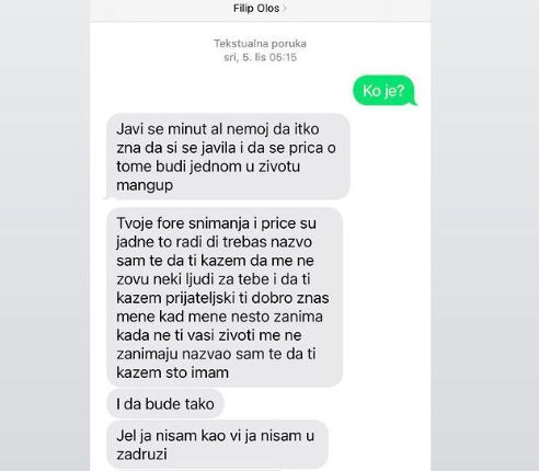 Odmah potom se oglasio i Filip koji je na prvu loptu negirao da ju je zvao, pa joj zapretio.