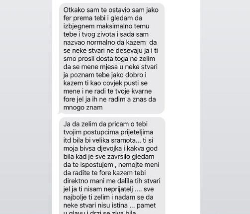 Dalila nakon što je iznela sve dokaze napisala je da nije želela da sve to izađe u javnost, ali je bila primorana, pa pozvala Filipa da i on iznese šta ima i čime joj preti: