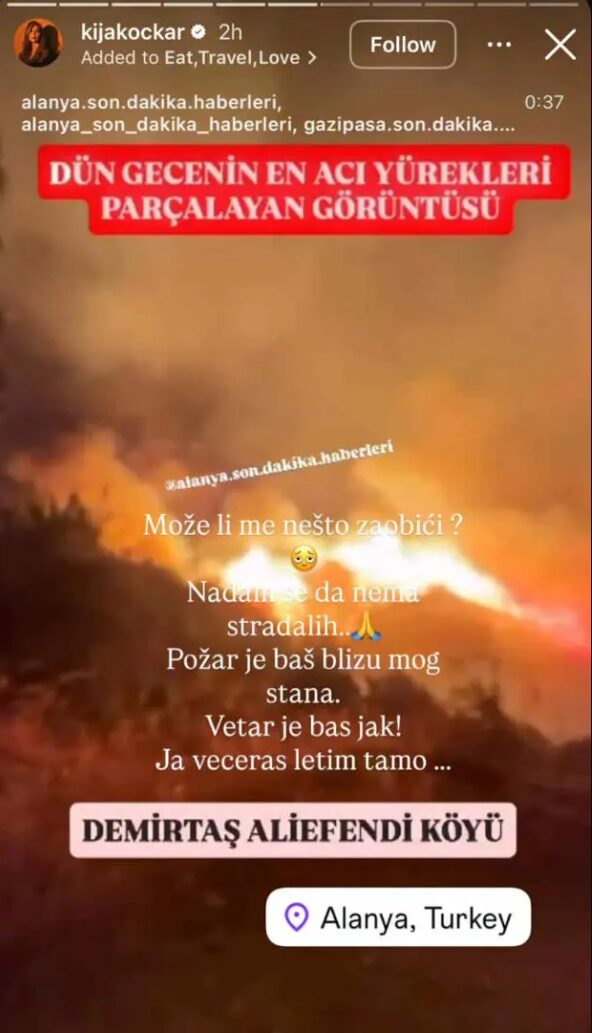 – Može li me nešto zaobići? Nadam se da nema stradalih. Požar je baš blizu mog stana Vetar je baš jak. Ja večeras letim tamo – napisala je Kija Kockar.