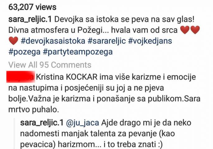 Naime, Sara je u raspravi sa Kijinim fanovima rekla da Kockareva nema pevačkog talenta. Malo je pokudila, a potom je ubrzo i pohvalila: